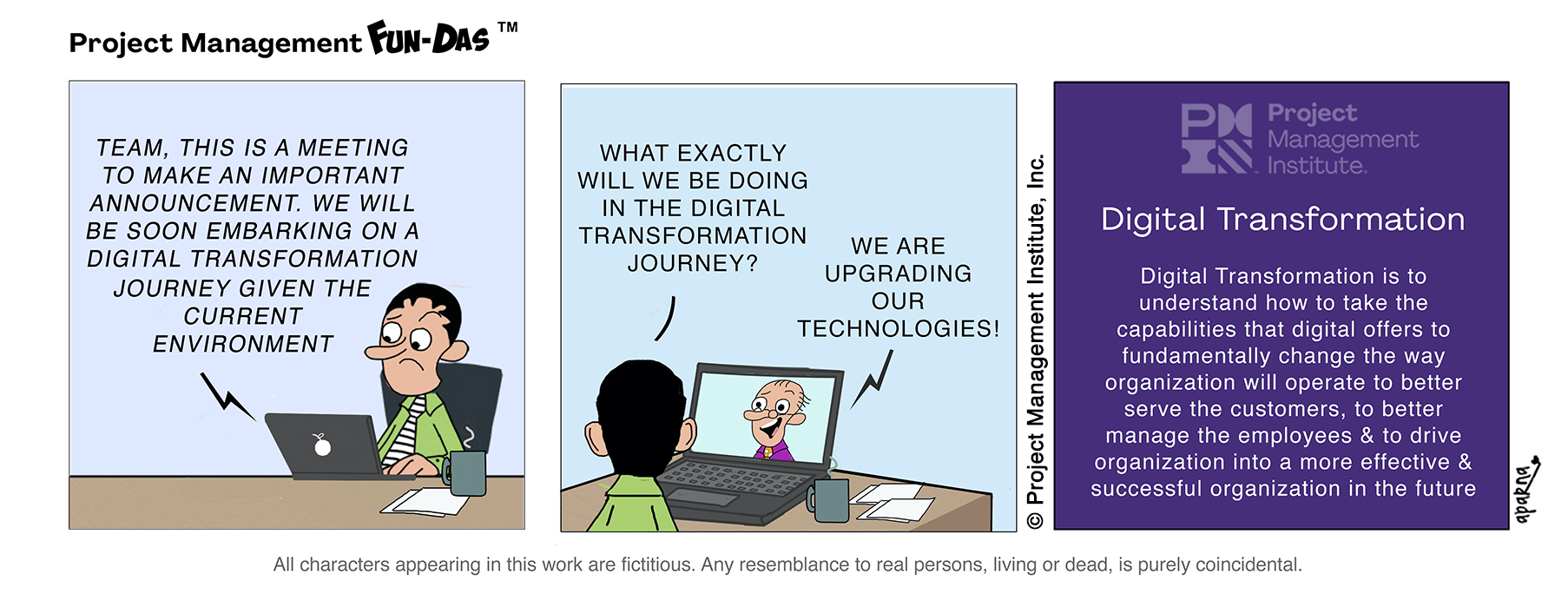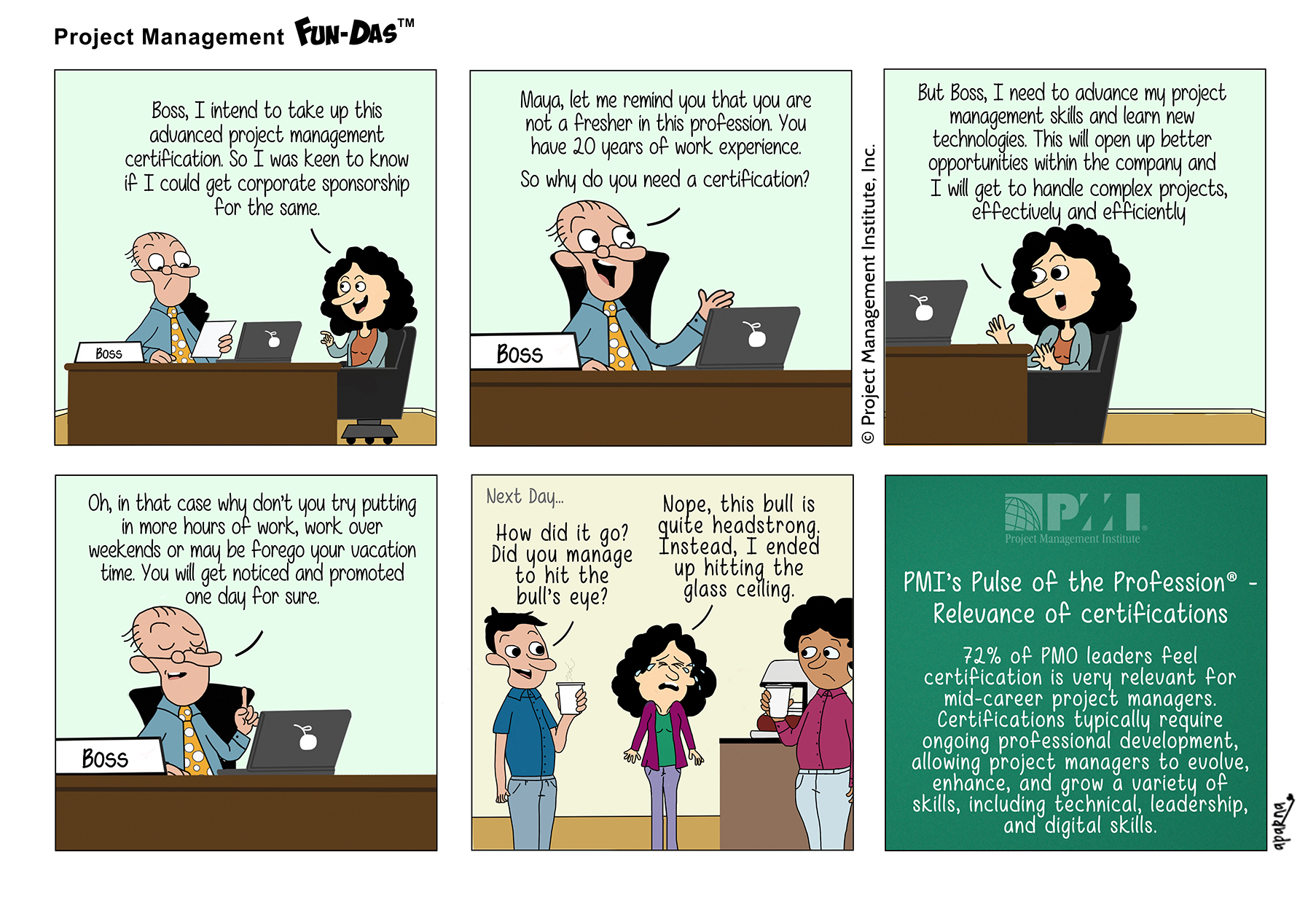 A weekly comic strip from PMI highlighting humorous situations and challenges in a project manager’s daily grind.